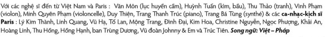 Nhạc kịch được hát và diễn bằng tiếng Việt, với phụ đề tiếng Pháp.