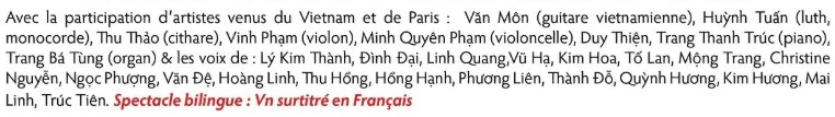Le théâtre musical est chanté et joué en vietnamien, avec surtitres en français.