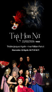 Dimanche 22 mars 2026, à 14h30, Trúc Tiên présente » TRÀ HOA NỮ « , adaptation vietnamienne musicale de » La Dame aux Camélias » d’Alexandre Dumas fils, au Théâtre MPAA Higelin Paris 6e, avec le soutien du Cercle Premier.