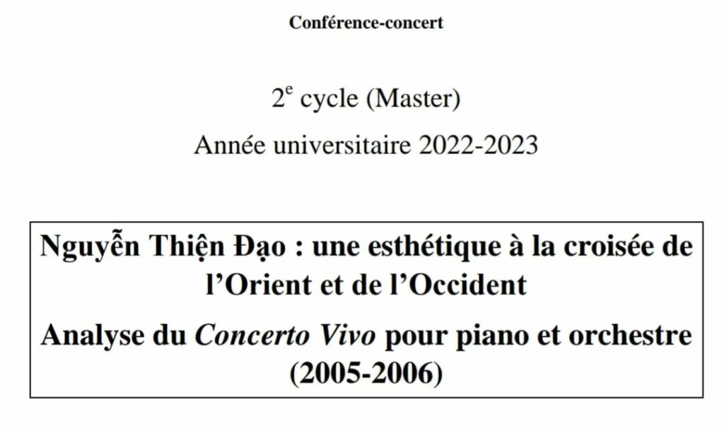Mercredi 11 octobre 2023, la pianiste Julie Nguyên fera une conférence musicale sur le compositeur franco-vietnamien Nguyễn Thiện Đạo, dans … Lire la suite de Conférence musicale sur Nguyễn Thiện Đạo par Julie Nguyễn (Lyon)