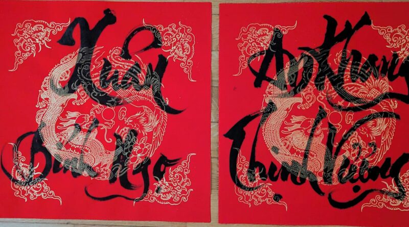 Calligraphie peinte par Vũ Cẩn (c) Mai HX - Lettre d’information – Newsletter de Février 2024 – Gala du Têt et AG du MCFV :